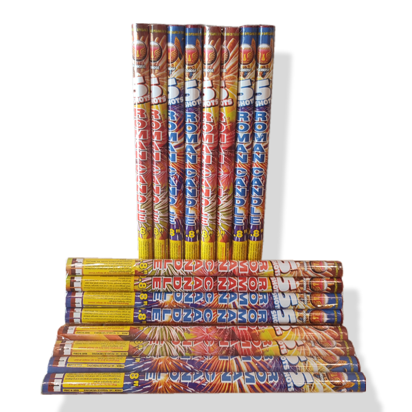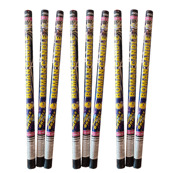 Roman Candle ada beberapa ukuran diameter ( inch ) yaitu 0.75 inch – 2 inch dengan jumlah shots 5 – 12 shots. Apabila semakin besar diameter ( inch ) makan ledakan akan semakin keras dan letusan bintang akan semakin besar. Apabila semakin tinggi tongkat nya akan semakin tinggi lontaran yang di hasilkan dan ada beberapa warna dalam letusan bintangnya.